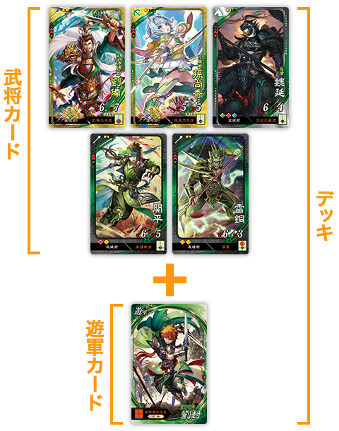 遊軍カードとは、実際に操作する武将カードとは別に、戦闘中にたまった「戦技ゲージ」を消費して必殺技「戦技」を発動するカードです。