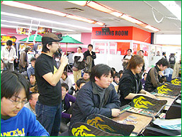 ■イベント開始イベント開始で、挨拶とゲストの紹介。 今回のゲストは、「fan114」闘将。 今回も来場者とのくじ引き対戦。 全国対戦で当たったこともあるプレイヤーから、「対人戦が実は今回が初めて」というプレイヤーまで登場。 バラエティに富んだ対戦。