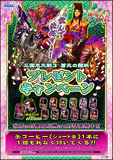 2009年1月31日(土)より全国の「三国志大戦3」設置のセガ アミューズメント施設(約240店舗)にて「『三国志大戦3